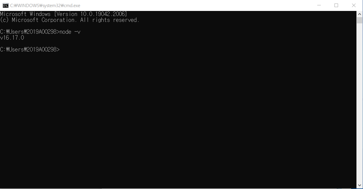 아래에 이런 식으로, 본인이 다운로드 받은 Node.js의 version이 정상적으로 나오면