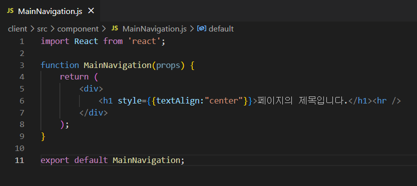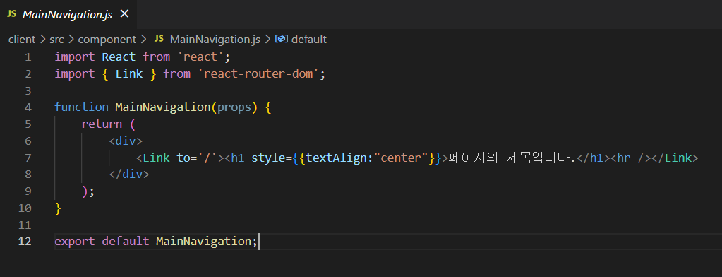 MainNavigation.js 파일도 마찬가지로, 누르면 메인페이지로 이동할 수 있도록 링크를 연결합니다.