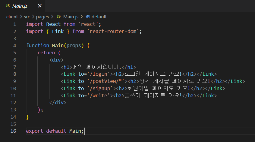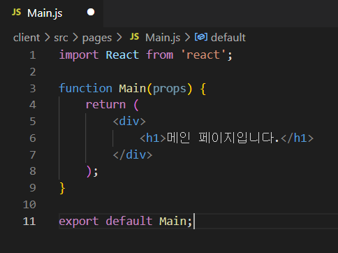 그 이후, 먼저 페이지가 보여지는 Main.js로 이동합니다