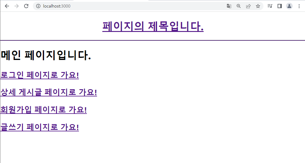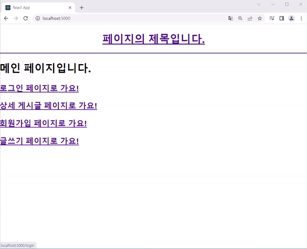 아까 App.js 파일에서 설정한 경로와 같은 경로로, 이동할 수 있는 링크를 연결해 줍니다.