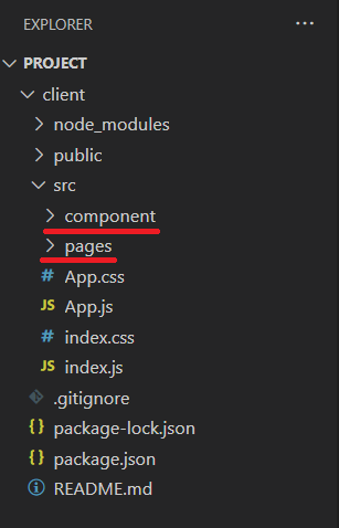또한, src 폴더 안에 component 폴더와, pages 폴더를 만들어 줍니다.