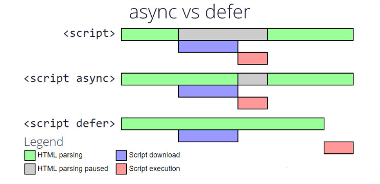 이를 해결하기 위해 <script> 태그 안에 async 와 defer 속성을 사용한다.
