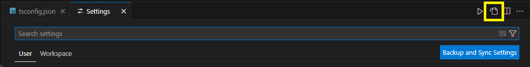 Ctrl + "," 단축키를 사용한 후, 아래의 노란 박스에 있는 이미지를 클릭하고, settings.json을 수정한다.